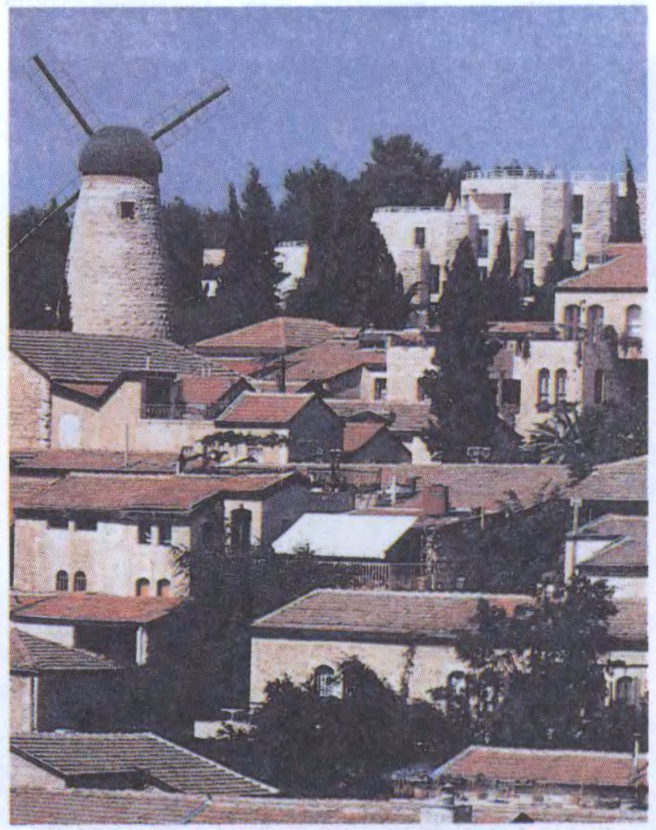 Да арт. Ізраіль. Панарама квартала Ямін Мошэ — першага пасялення яўрэяў па-за межамі Старога горада ў Іерусаліме.