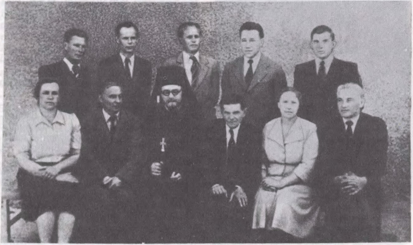 Да арт. Беларуская гімназія імя Янкі Купалы. Настаўнікі гімназіі ў Розенгайме. Сядзяць (злева направа): невядомая, А.Вініцкі, епіскап Васіль (Тамашчык), М.Равенскі, А.Савёнак, Л.Савёнак; стаяць: І.Муха, М.Кунцэвіч, А.Каханоўскі, В.Кажан. В.Кендыш.