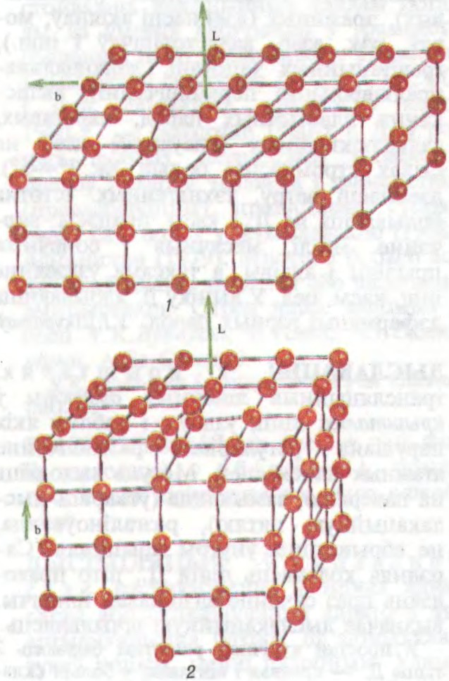 ДЫСЛАКА́ЦЫІў крышталях,