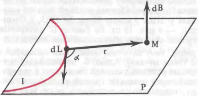 , дзе α — вугал паміж напрамкам току ў адрэзку dl і радыус-вектарам , праведзеным ад dl да названага пункта M, k — каэфіцыент прапарцыянальнасці, які залежыць ад выбранай сістэмы адзінак; у СІ