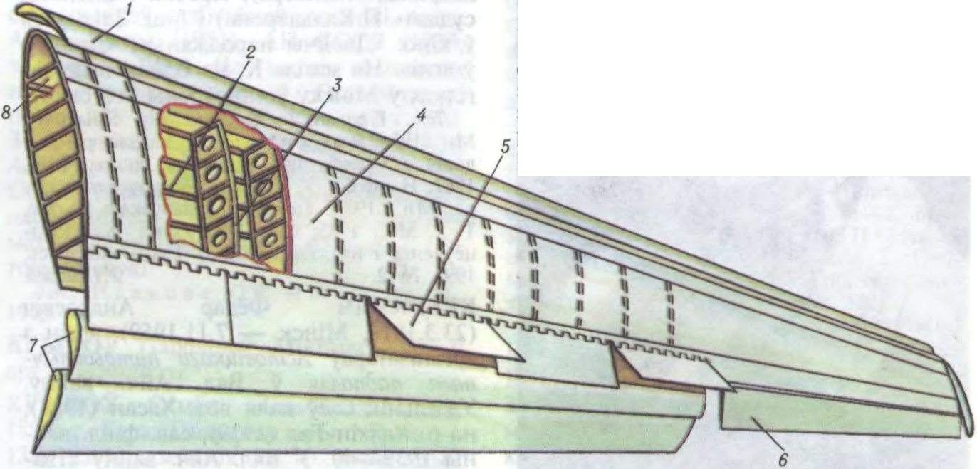 Складаецца з падоўжных (ланжэроны, стрынгеры) і папярочных (нервюры) сілавых элементаў і жорсткай абшыўкі. Есць К. са зменнай у палёце стрэлападобнасцю. На К. размяшчаюцца перадкрылкі, закрылкі, шчыткі, інш.сродкі механізацыі К. і органы кіравання (элероны, элевоны, інтэрцэптары), а часам апоры шасі і рухавікі. Унутры К. размяшчаюць паліва, ч. абсталявання, камунікацый, зброю і інш. Тэорыю К. распрацоўвалі М.Я.Жукоўскі, С.А.Чаплыгін, С.А.Хрысціяновіч, Г.Глаўэрт і інш.