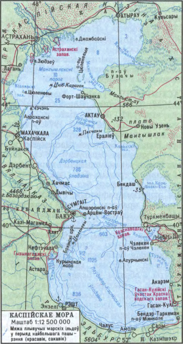 КАСПІ́ЙСКАЕ МО́РА, Каспій (назва ад стараж. племя каспіяў; інш. гіст. назвы — Гірканскае, Хазарскае, Хвалынскае мора),