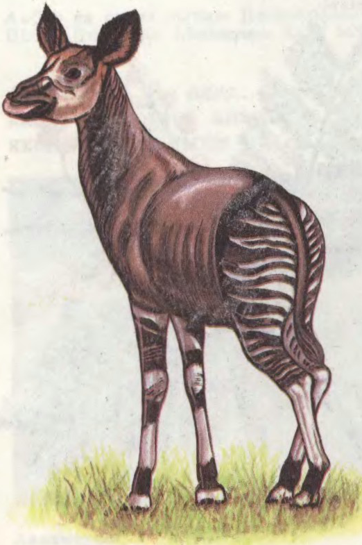 парнакапытнае млекакормячае сям. жырафаў. Жыве ў Афрыцы ў вільготных трапічных лясах бас.р.Конга. Рэдкая жывёліна.