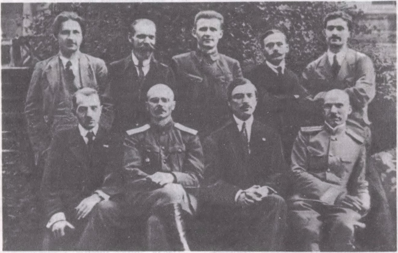 Народны сакратарыят Беларускай Народнай Рэспублікі. Злева направа: сядзяць — А.Бурбіс, Я.Серада, Я.Варонка, В.Захарка; стаяць — А.Смоліч, П.Крачэўскі, К.Езавітаў, А.Аўсянік, Л.Заяц. Мінск. 1918.