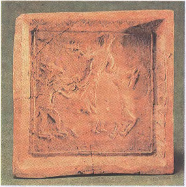 Да арт.Мядзельская кафля. Тэракотавая кафля з сюжэтнай выявай. Сярэдзіна 16 ст.