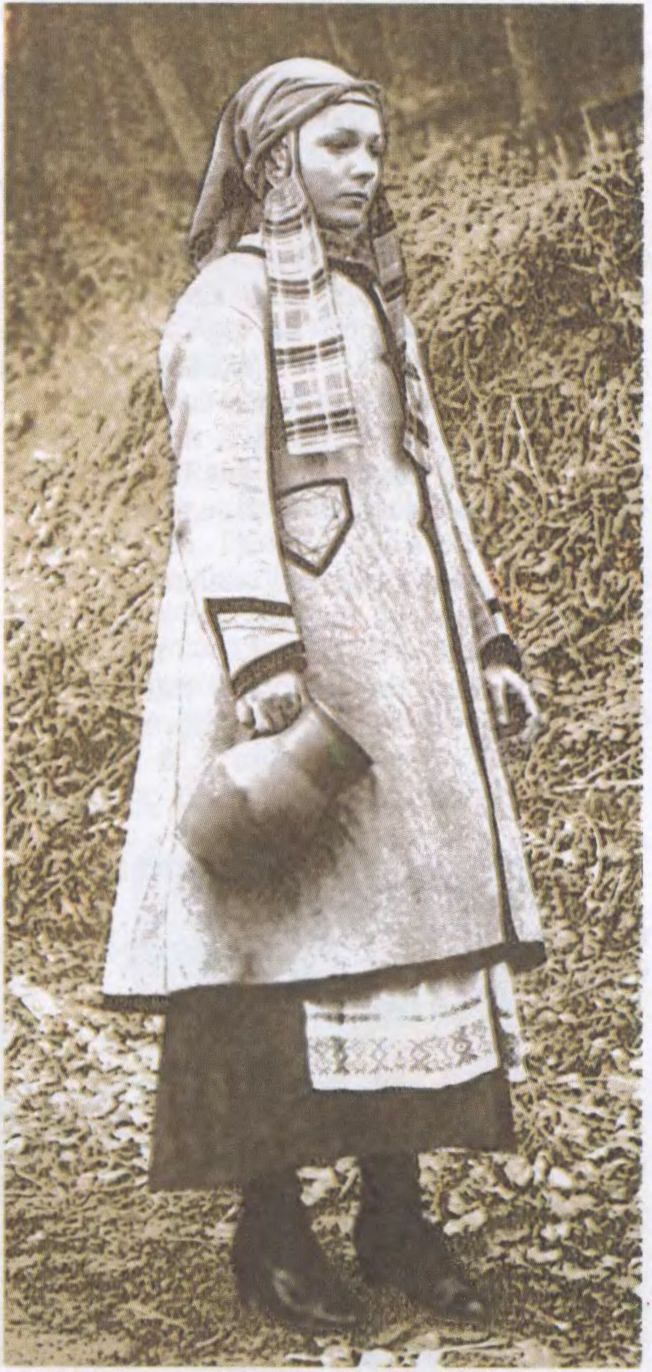 Да арт.Навагрудскі строй. Маладуха ў верхнім адзенні з каптуром. Вёска Курылавічы Мастоўскага раёна Гродзенскай вобл.
