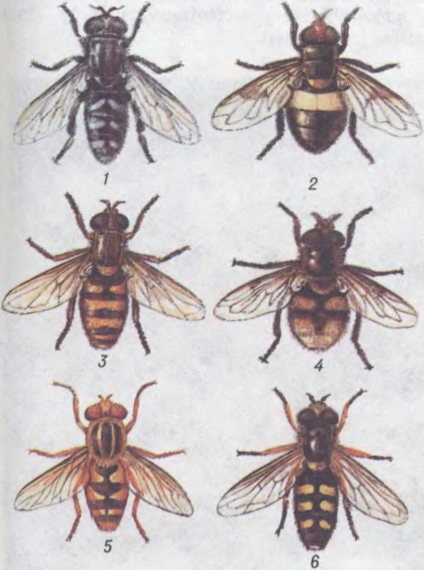 Даўж. 5—15 мм, радзей да 25 мм. Цела часта ярка афарбаванае; многія вонкавым выглядам нагадваюць джалячых перапончатакрылых — пчол, вос, чмялёў. Крылы празрыстыя з 3 радыяльнымі жылкамі. Вусікі 3-членікавыя. Вочы самцоў пераважна судакранаюцца, самак падзелены лбом. Добра лётаюць. Развіццё з поўным ператварэннем. Лічынкі жывуць у сцёкавых водах, гнаі, у гнёздах пчол, мурашак і інш. Лічынкі — драпежнікі, дэтрытафагі, расліннаедныя. Дарослыя кормяцца нектарам кветак. Апыляльнікі раслін.