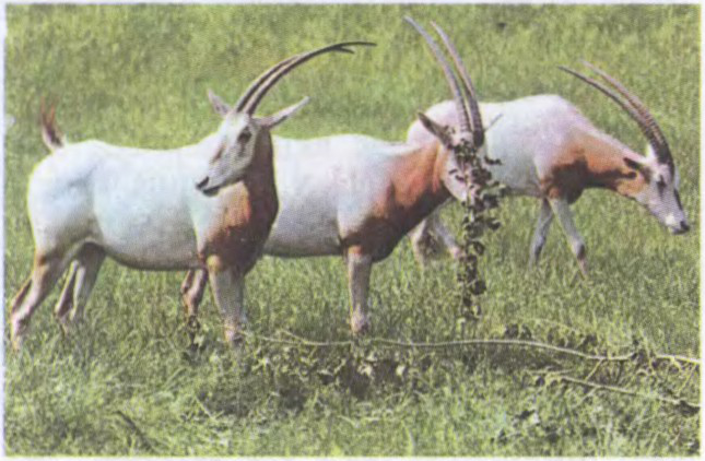 Даўж. да 2,35 м, выш. ў карку да 1,4 м, Maca да 200 кг. Самцы і самкі маюць доўгія (да 1,2 м) прамыя або дугападобныя рогі з вострымі канцамі. Афарбоўка цела шэра-пясочная, з рэзка акрэсленымі цёмнымі меткамі. Расліннаедныя. Здольныя доўгі час абыходзіцца без вады Нараджаюць 1, зрэдку 2 дзіцяняці. Аб’ект палявання і прыручэння.