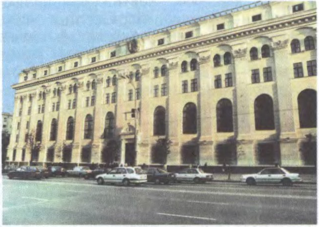 Пабудаваны ў 1947—52 (арх. М.Паруснікаў) на праспекце Ф.Скарыны. 4-павярховы Г-падобны ў плане будынак. У арх. вырашэнні інтэрпрэтаваны матывы класіцызму і рэнесансу, якія надаюць будынку манументальнасць і параднасць. У пластыцы гал. і бакавых фасадаў важную ролю адыгрываюць рытм пілястраў карынфскага ордэра і буйных арачных аконных праёмаў, антаблемент, расчлянёны паміж пілястрамі паўкруглымі аркамі. Будынак завершаны складаным карнізам і атыкам-парапетам.