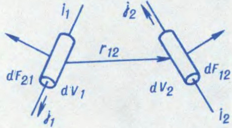 , дзе — шчыльнасць эл. току ў правадніку, — магн. індукцыя ў тым пункце прасторы, дзе знаходзіцца элемент аб’ёму правадніка dV, — вектарны здабытак вектараў і . Названы ў гонар А.М.Ампера.
