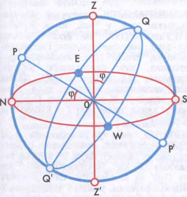 На Н.с. і ўнутры яе фіксуюцца гал. лініі і пункты, адносна якіх праводзяцца ўсе вымярэнні вуглавых велічынь. Звычайна цэнтр Н.с. змяшчаюць у пункт знаходжання вока назіральніка. Прамая ZOZ′, якая праходзіць праз цэнтр O Н.с. і супадае з напрамкам ніткі адвеса ў месцы назірання, наз.вертыкальнай лініяй. Яна перасякае Н.с. ў пунктах зеніту (Z) і надзіра (Z′). Плоскасць, што праходзіць праз цэнтр Н.с. перпендыкулярна вертыкальнай лініі, перасякае Н.с. па акружнасці SWNE, якая наз. матэматычным ці сапраўдным гарызонтам. Ён падзяляе Н.с. на бачную і нябачную паўсферы. Дыяметр РР’, вакол якога адбываецца вярчэнне Н.с., наз. воссю свету. Яна перасякае Н.с. ў Паўночным (P) і Паўднёвым (P′) полюсах свету. Вугал φ паміж воссю свету і плоскасцю гарызонта роўны геагр. шыраце месца назірання. Плоскасць, што праходзіць праз цэнтр Н.с. перпендыкулярна восі свету, перасякае Н.с. па акружнасці QWQ′E, якая наз.нябесным экватарам. Ён падзяляе паверхню Н.с. на 2 паўшар’і — паўночнае і паўднёвае. Нябесны экватар перасякаецца з матэм. гарызонтам у 2 пунктах — пункце ўсходу (E) і пункце захаду (W). Плоскасць, што праходзіць праз вось свету і вертыкальную лінію, перасякае Н.с. па акружнасці PZQSP′Z′Q′N, якая наз.нябесным мерыдыянам. Ён падзяляе паверхню Н.с. на ўсходняе і заходняе паўшар’і. Нябесны мерыдыян перасякаецца з матэм. гарызонтам у пункце поўначы (N) і пункце поўдня (S); прамая NS — паўдзённая лінія. Вялікі круг Н.с., які праходзіць праз зеніт, свяціла М і надзір, наз.кругам вышыні, ці вертыкалам свяціла. З прычыны сутачнага вярчэння Зямлі становішча свяціл на Н.с. зменьваецца: яны апісваюць паралельныя нябеснаму экватару акружнасці — нябесныя, ці сутачныя паралелі свяціл. Плоскасць, што праходзіць праз цэнтр Н.с., полюсы свету і свяціла, перасякае Н.с. па акружнасці, якая наз.гадзінным кругам ці кругам схілення свяціла.