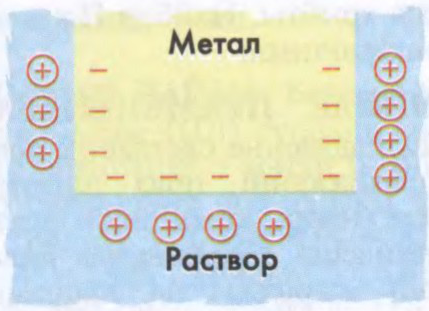 Утварэнне падвойнага электрычнага слоя пры апусканні металу ў электраліт.