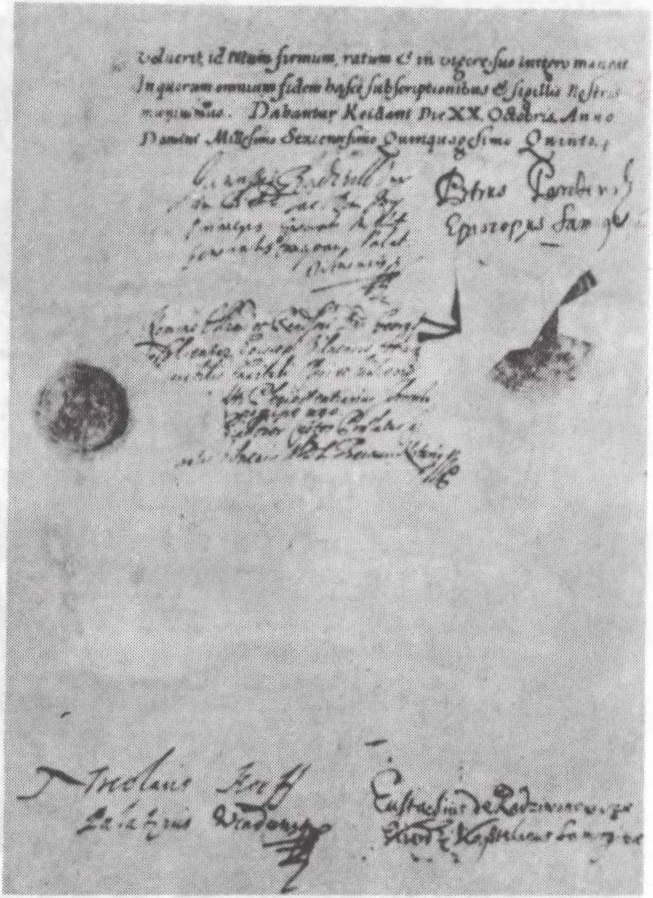 Да арт. Вайна Расіі з Рэччу Паспалітай 1654—67. Апошняя старонка Кейданскага дагавора 1655 аб уніі ВКЛ са Швецыяй.