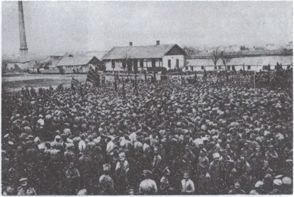 Да арт. Кастрычніцкая рэвалюцыя 1917. Салдацкі мітынг на Заходнім фронце ў кастрычніцкія дні 1917.