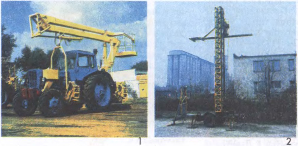 Пад’ёмнікі: 1 — трактарны для работ на вышыні (з-д «Белспецкамунмаш»); 2 — «Рамонтнік» для разгрузкі транспартных сродкаў і падачы грузаў у аконныя праёмы (ВА «Белкамунмаш»).