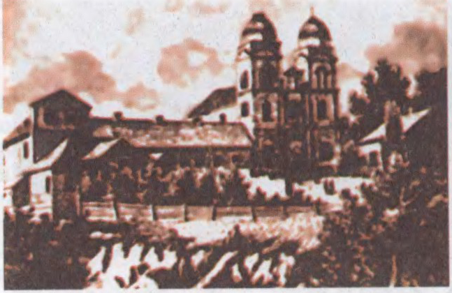 Мазырскі касцёл і кляштар бернардзінцаў. Будынак касцёла.Мазырскі касцёл і кляштар бернардзінцаў. З гравюры 1865.