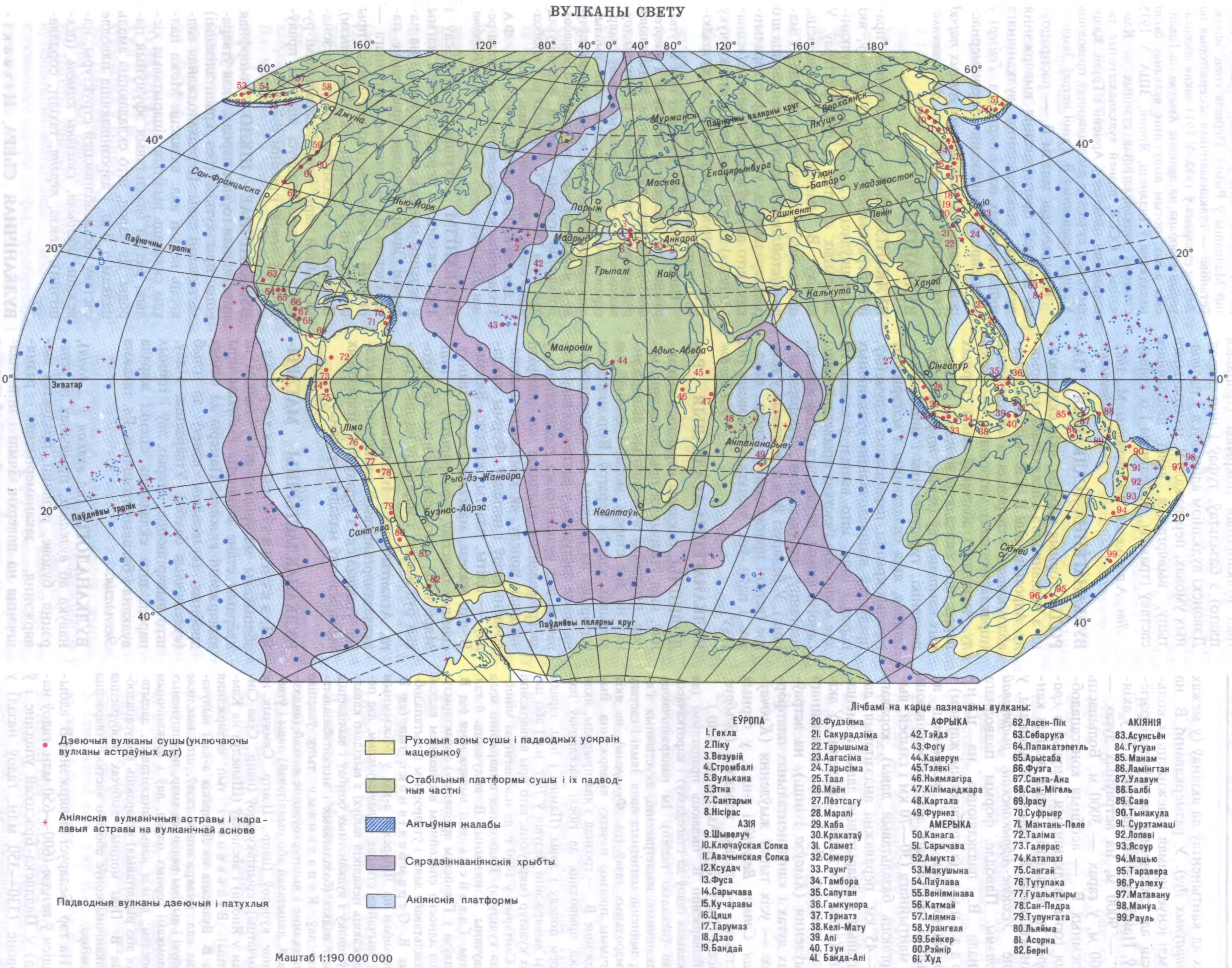 Прадукты вывяржэння вулкана — вулканічныя газы, вулканічны попел, вулканічныя бомбы, лава, шлакі і