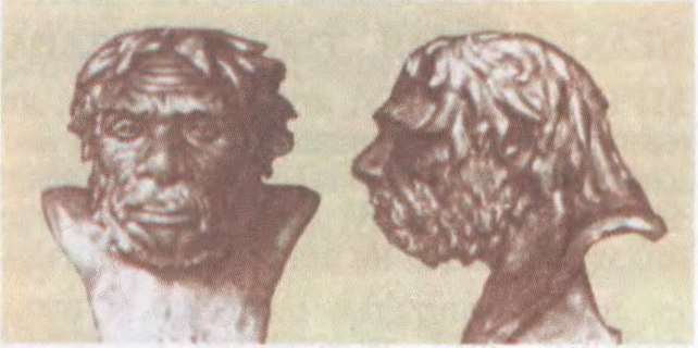Неандэрталец (фас і профіль). Рэканструкцыя М.М.Герасімава. 1948.
