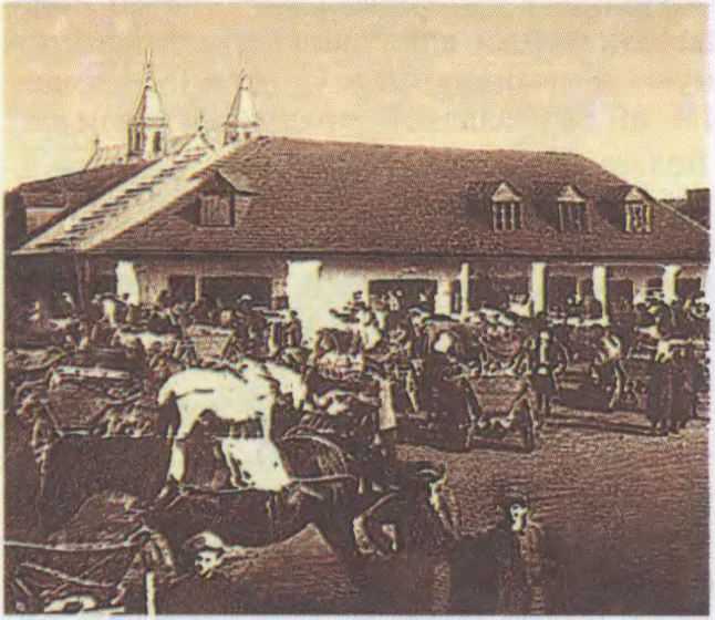 Да арт. Мястэчка. Гандлёвая плошча ў Клецку (Мінская вобл.). 1930-я г.