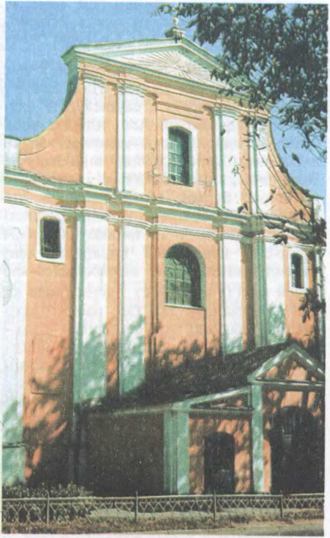 помнік архітэктуры сталага барока ў г. Ліда Гродзенскай вобл. Пабудаваны ў 1765 ці 1747—70 (арх. І.К.Глаўбіц). Храм з прамавугольнай алтарнай часткай, якая прадаўжае цэнтр. неф, і 2 квадратнымі ў плане сакрысціямі. Гал.фасад завершаны фігурным шчытом з трохвугольным франтонам, расчлянёны слаістымі пілястрамі. Бакавыя фасады апяразаны прафіляваным карнізам і рытмічна члянёны высокімі арачнымі аконнымі праёмамі і пілястрамі ў прасценках. Інтэр’ер упрыгожаны фрэскавай размалёўкай, скульптурай і арнаментальнай лепкай. У ім 3 мураваныя алтары, цэнтральны раскрапаваны 4 калонамі карынфскага ордэра, размаляванымі пад мармур, і спаранымі пілястрамі гэтага ж ордэра.
