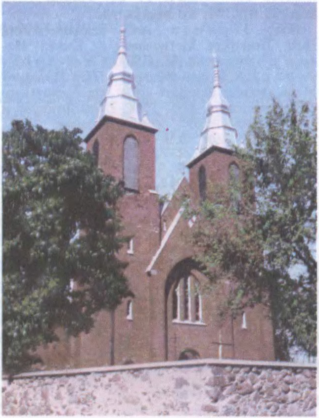 помнік архітэктуры неаготыкі. Пабудаваны ў 1914 з чырвонай цэглы ў г.п. Відзы (Браслаўскі р-н Віцебскай вобл.). Мураваны 3-нефавы храм з трансептам і гранёнай апсідай, абапал якой 2 сакрысціі. Сцены звонку ўмацаваны контрфорсамі, вокны спічастыя. Двухвежавы гал.фасад з трохвугольным франтонам завершаны высокімі зубцамі. Такія ж франтоны ўпрыгожваюць тарцы трансептаў. Гал. ўваход вылучае перспектыўны партал з вімпергам і круглым акном-ружай над ім. Вежы на гал. фасадзе (выш. 59 м) завершаны вострымі 8-граннымі шатрамі і значна ўзвышаюцца над астатнімі аб’ёмамі. У інтэр’еры калоны і пілястры складанага профілю пераходзяць у высокія падпружныя спічастыя аркі скляпенняў.