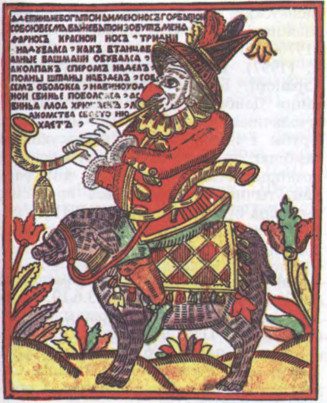 Да арт.Лубок. Блазан Фарнос, Чырвоны нос. Рускі народны лубок. 18 ст.