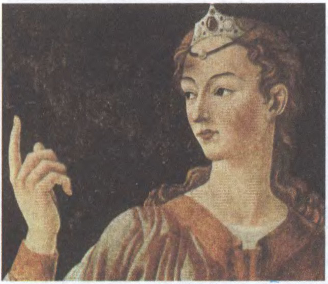 Андрэа дэль Кастаньё Сівіла Кумская. Фрэска цыкла «Вядомыя людзі» з вілы Кардучы ў Леньяйі. Фрагмент. Каля 1450—51.