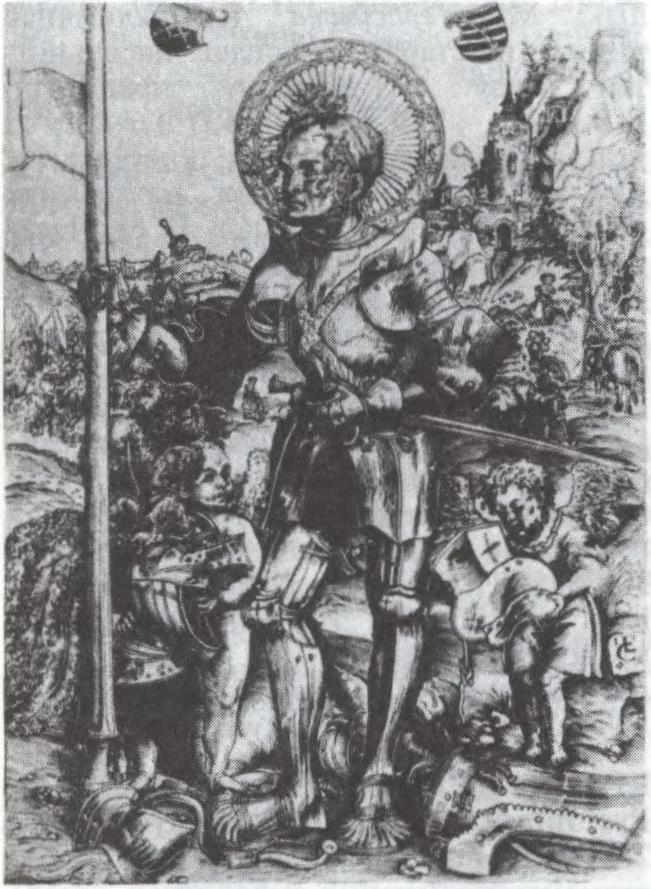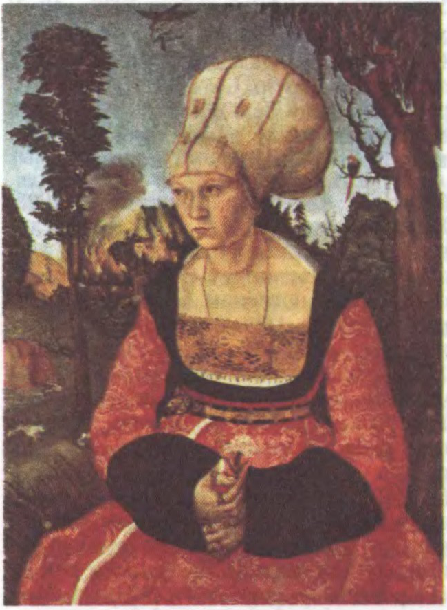 Л.Кранах. Святы Георг стаіць з двума анёламі. 1506.Л.Кранах. Партрэт Ганны Куспініян. 1502—03.