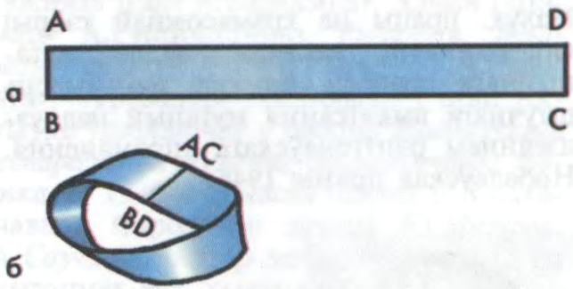 Да арт.Мёбіуса ліст: а — зыходны прамавугольнік; б — ліст Мёбіуса.