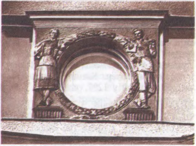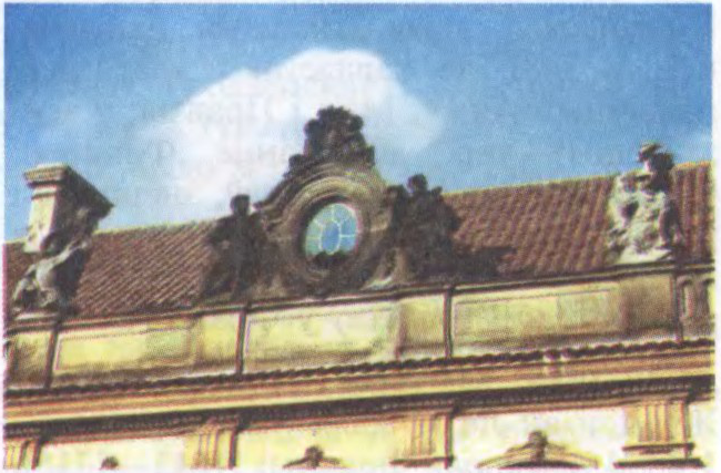 Люкарна на галоўным фасадзе гарадскога універмага ў Мінску.Люкарна на фасадзе палаца Браніцкіх у Варшаве.