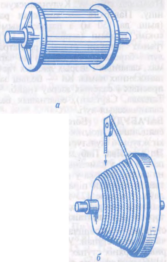 Барабаны: а — пад’ёмнай лябёдкі; б — рудніковай пад’ёмнай машыны.