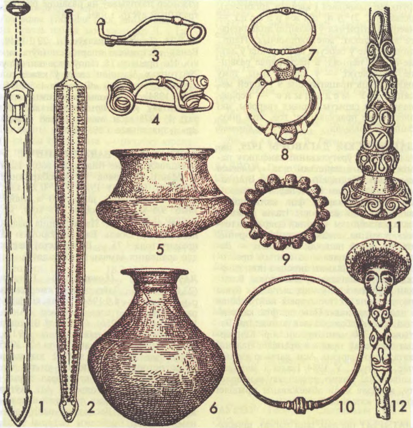 Нумізматыка: 1 — златнік (золата); 2—4 — сярэбранікі (серабро), канец 10 — пач. 11 ст.; 5 — грыўня (рубель) чарнігаўскага тыпу (серабро), 2-я пал. 13 ст.; 6 — грыўня (рубель) кіеўскага тыпу (серабро), 11—13 ст.; 7 — грыўня (рубель) наўгародскага тыпу (серабро), 13—14 ст.; 8 — палова грыўні наўгародскага тыпу («палціна»); 9 — грыўня (рубель) заходнярускага (літоўскага) тыпу (серабро), 14—15 ст.; 10 — солід (білон), 1652; 11 — «барацінка» (медзь) 1665; 12—14 — паўгрошы (білон), 1494—1506, 1509, 1565; 15—23 — грошы (білон), 1536, 1546, 1555, 1580, 1607, 1608, 1612, 1627, 1652; 24 — два грошы (серабро) 1565; 25—27 — тры грошы (білон і серабро) 1546, 1562, 1562; 28 — чатыры грошы (серабро) 1566; 29—31 — шэсць грошаў (білон і серабро) 1547, 1562, 1664; 32—33 — паўкопкі (серабро) 1564, 1565; 34 — талер (серабро) 1580.