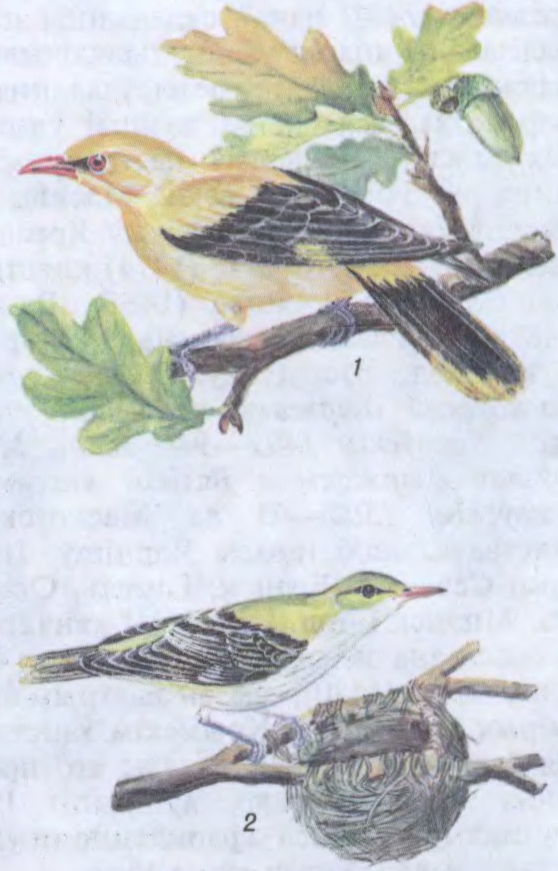 Івалга звычайная: 1 — самец, 2 — самка каля гнязда.