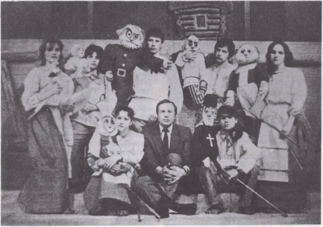 Да арт. Беларускі тэатр «Лялька». Удзельнікі спектакля «Дзед і Жораў» В.Вольскага.