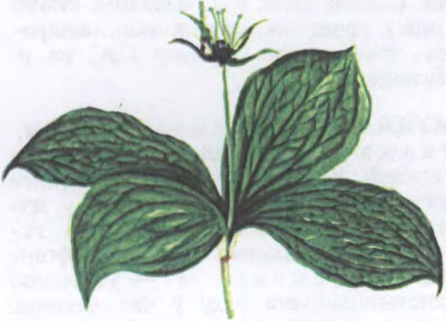 М. чатырохлістая — шматгадовая травяністая расліна выш. да 30 см з паўзучым карэнішчам. Сцябло прамастойнае. Лісце яйцападобнае або ланцэтнае, амаль сядзячае, сабранае ў кальчак у верхняй ч. сцябла. Кветка адзіночная, верхавінкавая. Плод — шызавата-чорная ягада, нагадвае вока вароны. Расліна лек.; ядавітая, асабліва ягады.