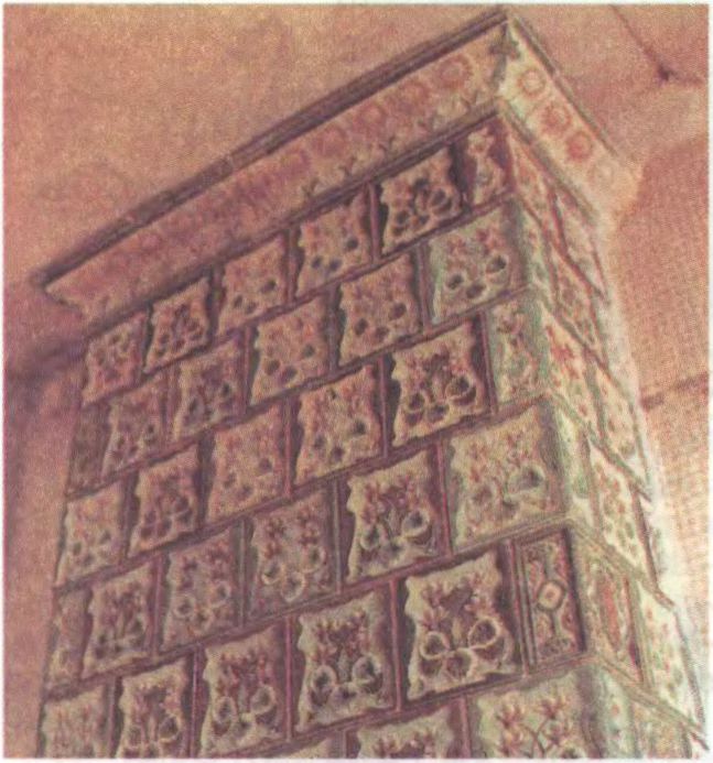 Да арт.Копыская кафля. Фрагмент печы з кафлі, маляванай каляровымі палівамі. Канец 19 — пач. 20 ст.