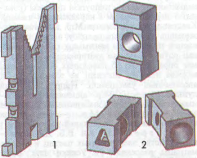 Матрыца ў паліграфіі: 1 — лінатыпная; 2 — манатыпныя.