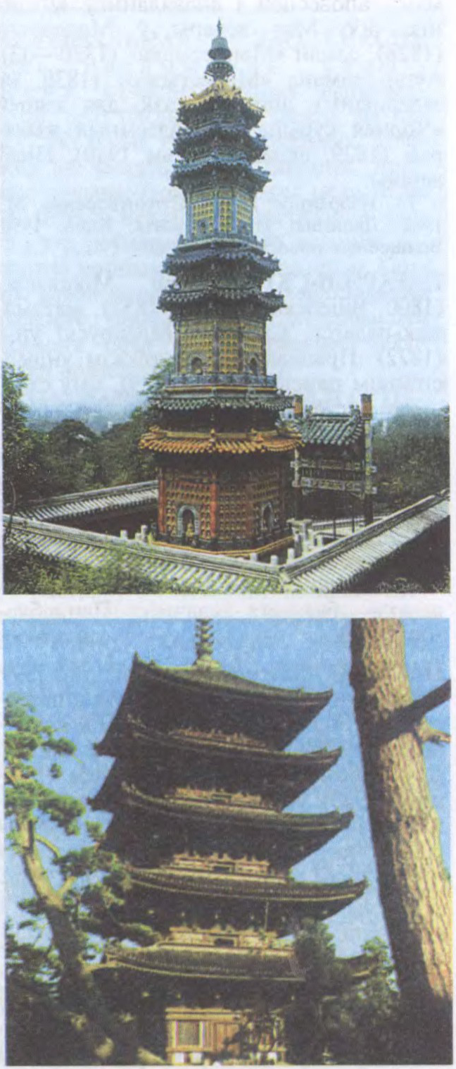 Пагады: фарфоравая ў Летнім палацы імператара ў Пекіне (уверсе) і манастыра Кафукудзі ў г. Нара (Японія).