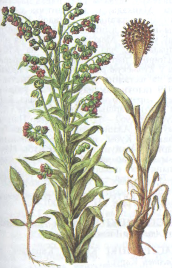 Адна-, двух- і шматгадовыя травяністыя расліны выш. 35—100 см з цёмным тоўстым верацёнападобным коранем, 2—3 баразнаватымі густааблісцелымі сцёбламі, непрыемным пахам. Лісце суцэльнакрайняе, апушанае. Кветкі паніклыя, бура-чырв., у мяцёлчатым суквецці. Плод — 4-арэшак з кручкаватымі шыпамі. Ядавітыя, лек., меданосныя і дэкар. расліны.