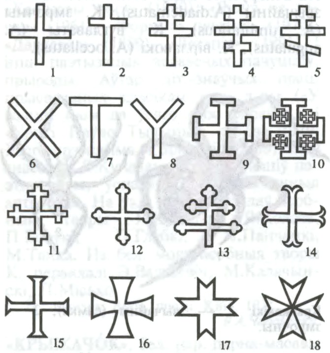сімвалічны і дэкаратыўны знак (звычайна складаецца з 2 перакрыжаваных прамых), адзін з галоўных хрысціянскіх сімвалаў і прадметаў культу. Вядомы з першабытнай эпохі ў культурах розных народаў свету. Выступае як геаметрызаваны варыянт сусв. дрэва, сімвал каардынат, які дае чалавеку арыенцір у прасторы і часе; звязаны таксама з сімволікай сонца і агню (салярны знак). Найчасцей К. лічыўся сімвалам вышэйшых сакральных каштоўнасцей. У міфалогіі ён падкрэсліваў ідэю цэнтра і асн. кірункаў, якія ідуць ад цэнтра. На думку многіх даследчыкаў міфалогіі, К. сімвалізаваў духоўныя аспекты: узыходжанне духа, імкненне да Бога і вечнасці. Часта К. выступаў як мадэль чалавека і антрапаморфнага божышча. У спалучэнні з колам лічыўся знакам злучэння мужчынскага і жаночага пачаткаў. К. на шары — вярхоўная ўлада, перамога духоўнага. Адной з разнавіднасцей К. з’яўляецца свастыка, якая вядома ў Еўразіі з верхняга палеаліту і абазначае спрыяльны, шчаслівы аб’ект, салярны сімвал, знак святла і шчодрасці. На тэр. Беларусі, пераважна ў яе паўн. і сярэдняй частках, выявы свастык трапляюцца ў жал. веку і сярэдневякоўі. У хрысціянстве К. лічыцца сакральным сімвалам, бо на ім, паводле Евангелля, быў распяты Ісус Хрыстос. Найб. пашыранымі формамі хрысц. К. з’яўляюцца: чатырохканцовы (яго разнавіднасці грэчаскі К., дзе верт. брус і перакладзіна аднолькавыя, і лацінскі, дзе верт. брус даўжэйшы за гарызантальны), Т-падобны, андрэеўскі (2 брусы, складзеныя як дыяганалі), рускі праваслаўны (з 2 перакладзінамі, верхняя гарыз. даўжэйшая, ніжняя дыяганальная), латарынгскі (з 2 гарызантальнымі перакладзінамі, верхняя карацейшая), васьміканцовы (у форме латарынгскага К., з кароткай перакладзінай унізе, дыяганальнай або гарызантальнай). Два апошнія К. даследчыкі называюць «патрыяршыя К.». Форма К. мае практычнае значэнне для хрысц. канфесій: католікі і пратэстанты карыстаюцца амаль выключна чатырохканцовым К., праваслаўныя — шасціканцовым і васьміканцовым розных варыянтаў, часам чатырохканцовым, стараверы прызнаюць толькі васьміканцовы К.