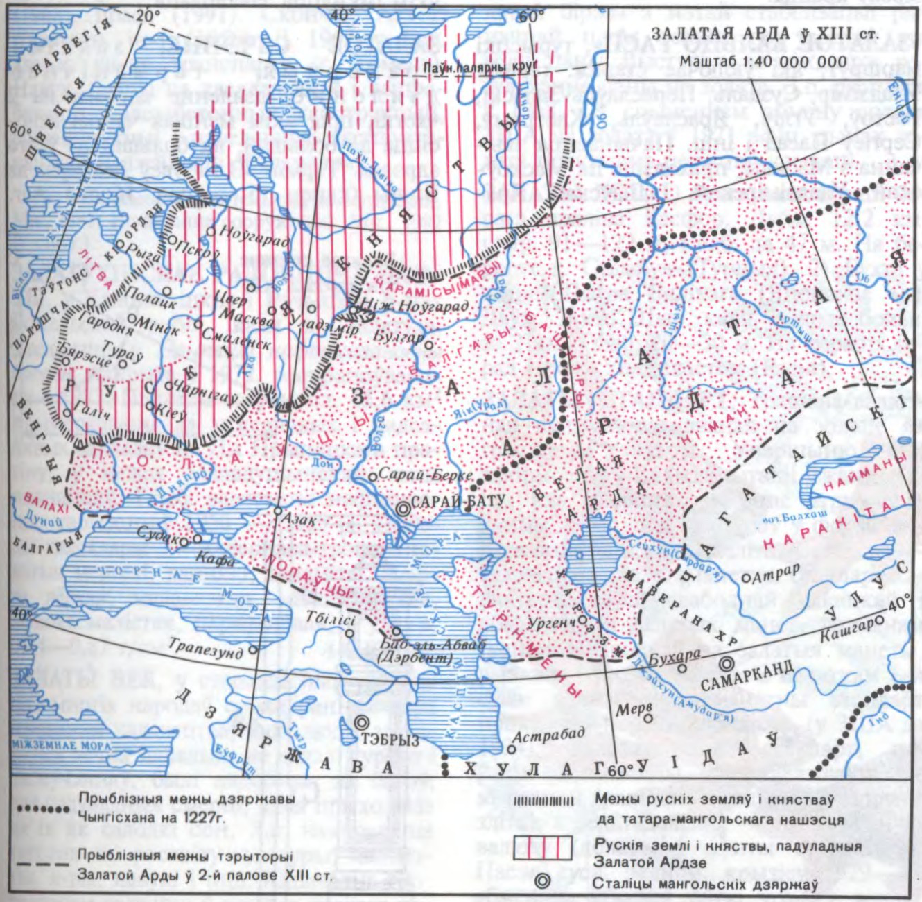 феад. дзяржава на тэр. Сярэдняй Азіі і Усх. Еўропы ў 13—15 ст. Узнікла ў пач. 1240-х г. Займала тэр.Зах. Сібіры, Паўн. Харэзма, Волжскай Булгарыі, Паўн. Каўказа, Крыма, стэпаў ад Волгі да Дуная; трымала ў васальнай залежнасці рус. землі. Напачатку займала зах.ч. імперыі Чынгісхана — тэр. ўдзельнага княства (улуса) яго сына Джучы (адсюль адна з назваў З.А.). Самаст. дзяржавай стала пры Батыі, сыне Джучы. Усх.ч. улуса Джучы (Зах. Сібір) атрымала назву Блакітнай Арды. Батый у выніку паходаў 1236—40 далучыў да сваіх уладанняў Паволжа, кіпчацкія стэпы (гл.Дэшт-і-Кіпчак), Паўн. Каўказ, Крым, Харэзм, пакарыў рус. княствы. У сярэдзіне 13 ст. хан Берке [1258—66] прыняў іслам і не стаў прызнаваць вярх. улады мангольскага хана. Напачатку сталіцай З.А. быў г. СарайБату (каля сучаснай Астрахані), з 1-й пал. 14 — г.Сарай-Берке (каля сучаснага Валгаграда). Пра ператварэнне З.А. ў самаст. дзяржаву сведчыць чаканка манеты з імем 5-га хана Менгу-Цімура |1267—80], Пасля яго смерці ў выніку міжусобных войнаў перамагла частка арыстакратыі мусульм. веравызнання. Яна вылучыла на ханскі пасад Узбека [1313—42], унука Менгу-Цімура. Пры Узбеку і яго сыне Джанібеку [1342—57] ЗА. стала адной з вял. дзяржаў сярэдневякоўя. У выніку шматлікіх прыдворных змоў і смут З.А. фактычна распалася 1370-я г. на 2 часткі: у раёнах на 3 ад Волгі правіў цемнік Мамай, ва ўсх. раёнах — Урус-хан. Унутр. бязладдзе З.А. скарысталі маскоўскія князі. У Кулікоўскай бітве 1380 войскі Мамая пацярпелі паражэнне. Часовае аднаўленне адзінства З.А. адбылося пры хане Тахтамышу, які ў 1380 разбіў Мамая на р. Калка, а праз 2 гады заняў і спаліў Маскву. Але правіцель Сярэдняй Азіі Тамерлан (Цімур) у 1391 і 1395 разбіў войскі Тахтамыша, разрабаваў сталіцу. На гэтым скончылася адзінства З.А.
