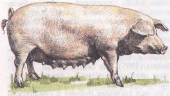Свінні пераважна мяса-сальнага і мяснога тыпаў, моцнай канстытуцыі, вынослівыя, высокапрадукцыйныя. Жывая маса дарослых кныроў 310—340, матак 240—250 кг, даўж. тулава адпаведна 184 і 161 см. Пладавітасць 10—11 парасят за апарос.