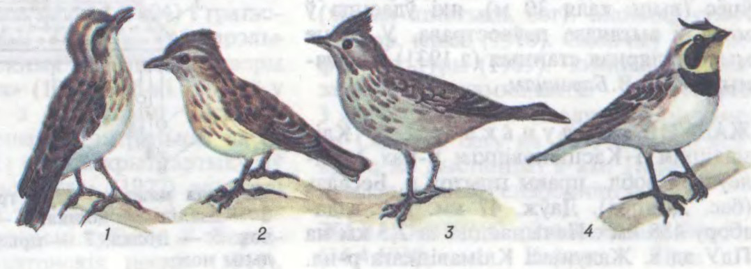 Даўж. цела 11—25 см, маса 15—70 г. Целасклад моцны. Ногі кароткія, на заднім пальцы шпорападобны кіпцюр. Крылы доўгія. Афарбоўка апярэння зямлістая, валляка і грудзей — часта плямістая. Гнёзды на зямлі, нясуць 2—6 яец (некат. двойчы на год). Самцы многіх відаў у трапяткім палёце пяюць над гнездавой тэрыторыяй. Ж. чубаты можа імітаваць галасы інш. птушак. Кормяцца насякомымі, насеннем раслін.