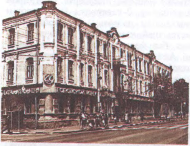 помнік грамадз. архітэктуры 2-й пал. 19 ст. ў Магілёве. Пабудаваны з элементамі стылю мадэрн. Напачатку існавалі 2 мураваныя будынкі: 3-павярховы і 2-павярховы, якія пазней аб’яднаны ў адзін Г-падобны корпус, да 2-павярховага будынка дабудаваны 3-і паверх. Гал. фасад вылучаны 2 рызалітамі, дзе размешчаны ўваходы. 1-ы паверх дэкарыраваны глыбокім рустам, члянёны прамавугольнымі аконнымі праёмамі. 2-і і 3-і паверхі ўпрыгожаны пілястрамі, паўкалонкамі, дэкар. ўстаўкамі з ляпным арнаментам. Аконныя праёмы 2 верхніх паверхаў лучковыя, у рызалітах балконы з металічнай агароджай.