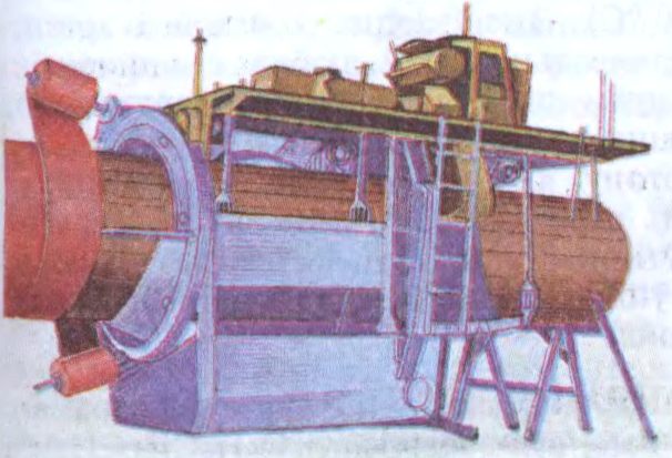 машына для нанясення слоя бітумнай масцікі на ачышчаную і пакрытую грунтоўкай вонкавую паверхню трубаправода і абмоткі яго ізаляцыйным матэрыялам (шклопалатном, брызолам, паперай).